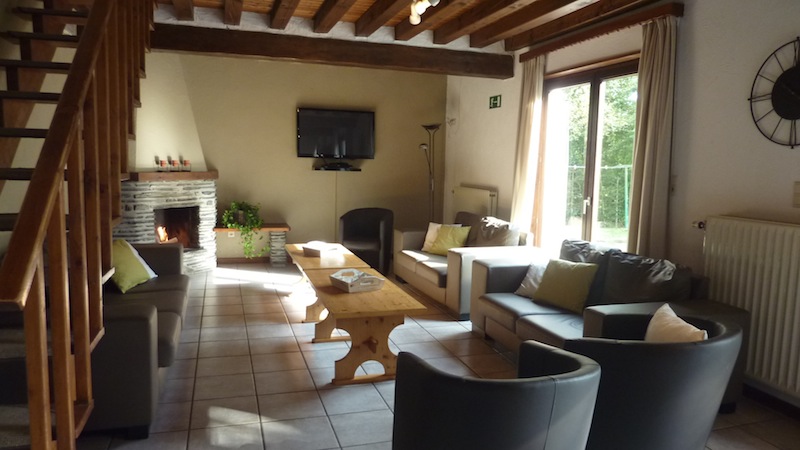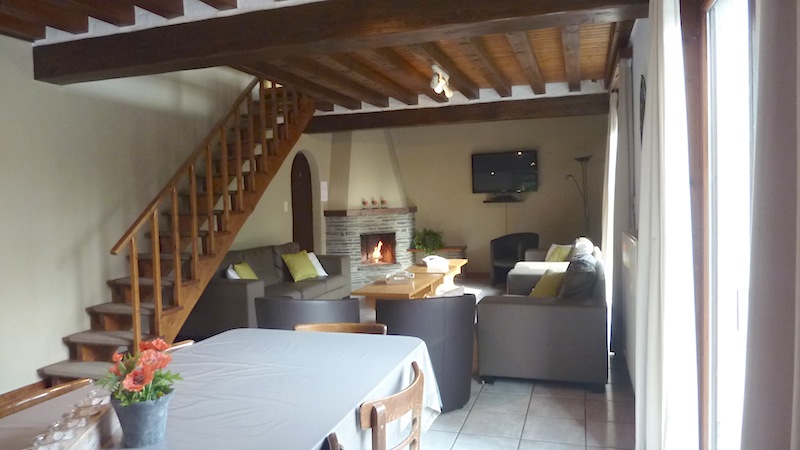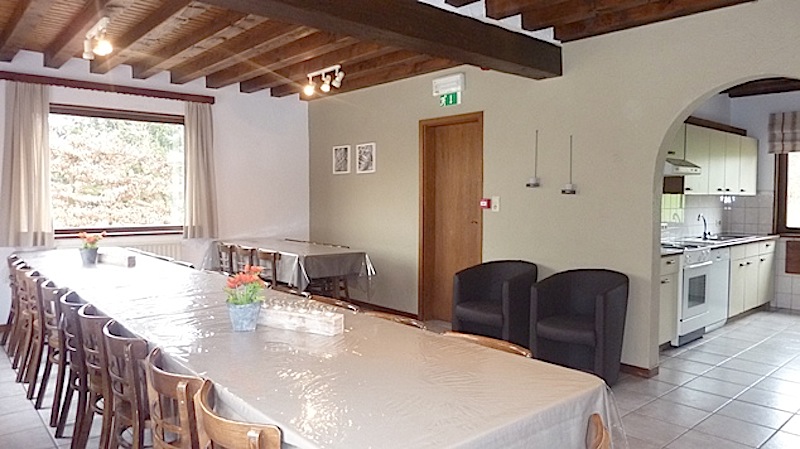 - Der großen Aufenthaltsraum ist ausgestattet mit bequemen Sesseln, offenen Kamin und Fernseher. Der Eß-bereich ist eingerichtet für 22 Personen.