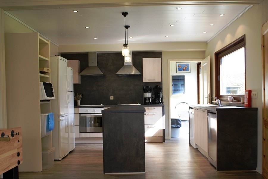 - Es gibt einem großen Eßzimmer, wo die ganze Gruppe zusammen sitzen kann.