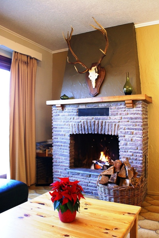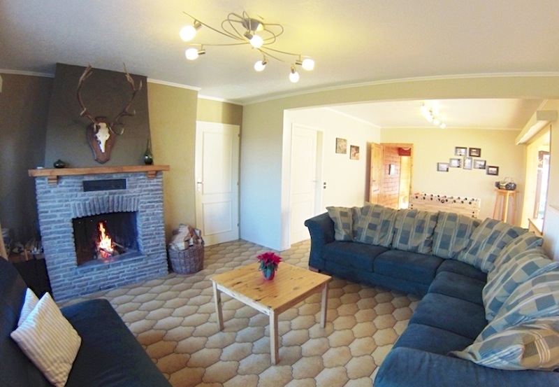 - Der Auftenthaltsraum ist eingerichtet mit bequemen Sesseln, Fernseher und Offenen Kamin