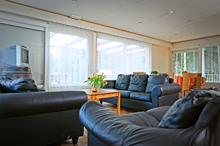 Ferienhaus Hohes Venn be511 ist für 12 Personen, schön ausgestattet mit Zweibettzimmer, Badezimmer, Eßzimmer, Selbstversorgerküche, einem Wintergarten mit Biljard, Fußballkicker, Tischtennis und einem Wald hinter dem Haus.