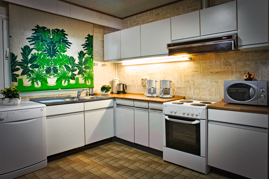 - Die Küche ist völlig ausgestattet mit Geschirrspüler, Mikrowelle, Elektroherd mit Backofen usw.