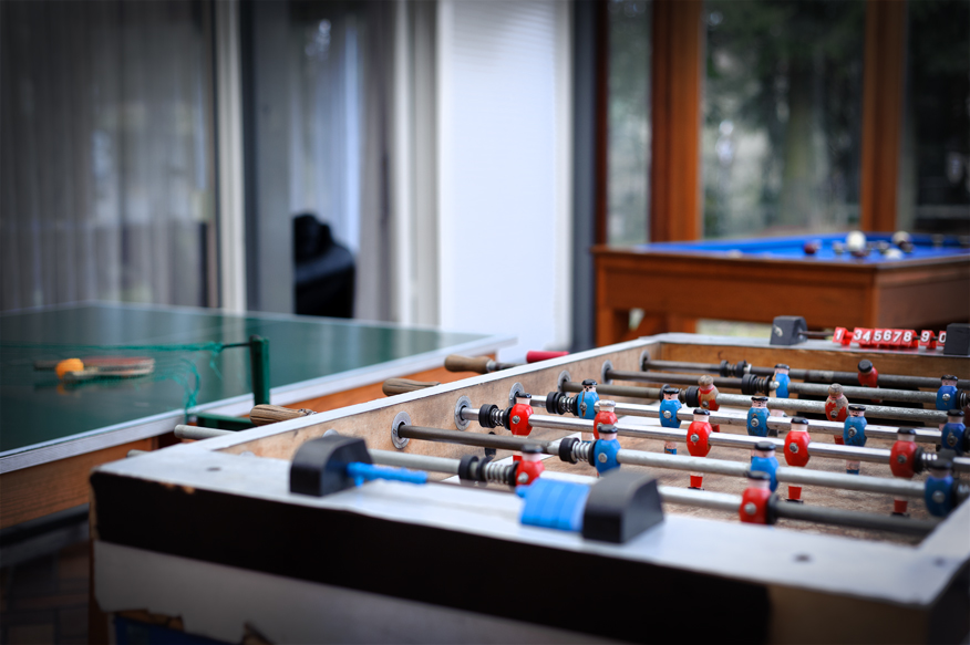 - Im Wintergarten ist der Biljard, Kicker und Tischtennisplatte